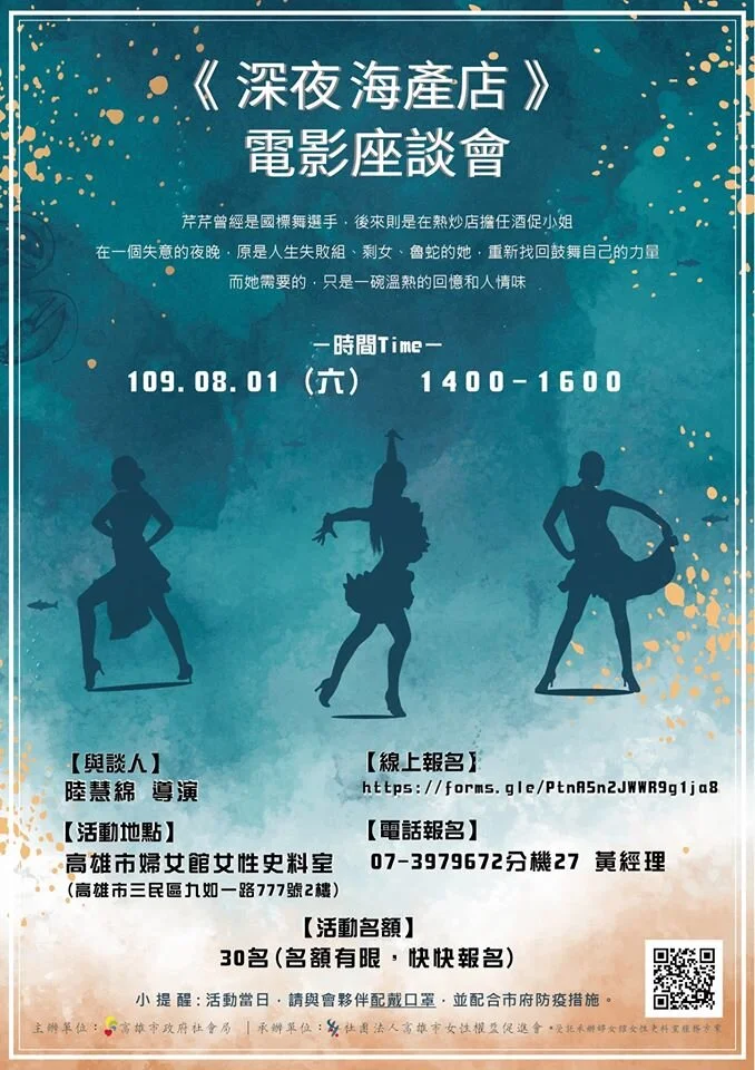本次講座邀請《深夜海產店》導演陸慧綿,播映《深夜海產店》,並與民眾談談影片中展現的女性自主、性別與階層,以及親子關係等性別平等議題。