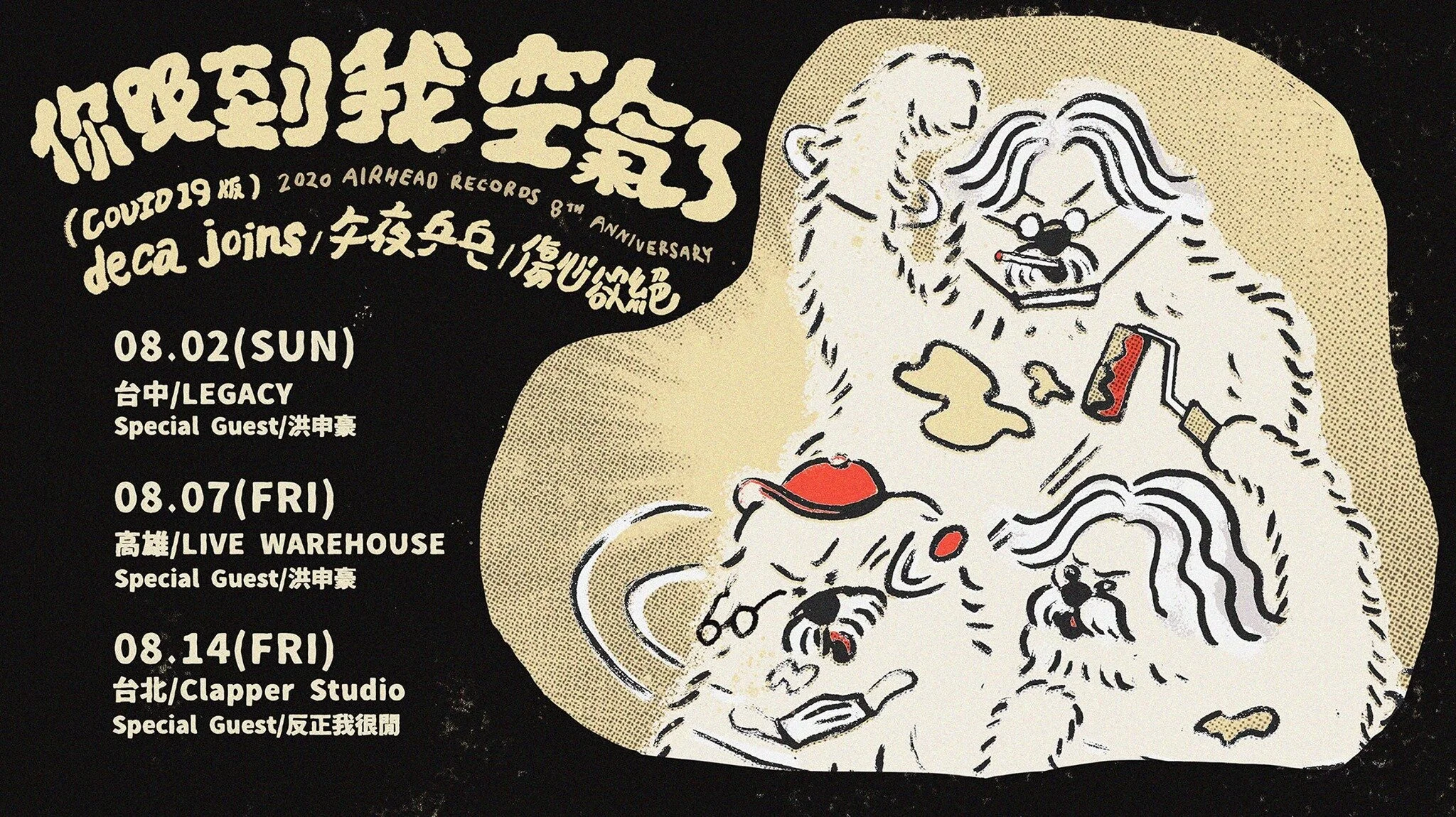 2020 你吸到我空氣了(COVID-19版) 空氣腦唱片8週年 deca joins、午夜乒乓、傷心欲絕聯合巡迴高雄場
