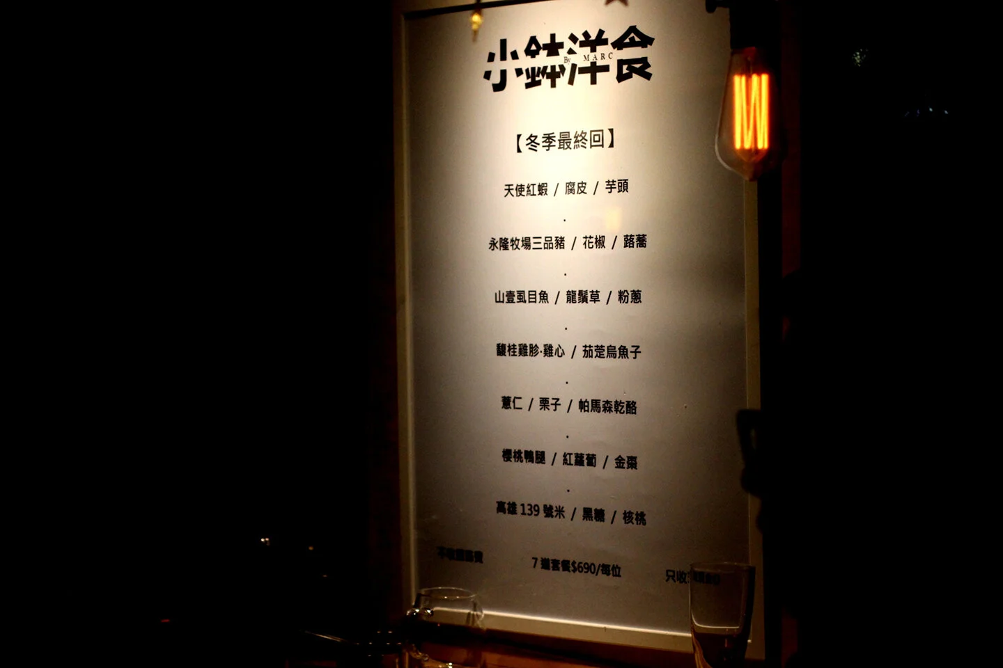 如今已消失的小鉢洋食,是這概念性計劃中極成功的範例,堂堂走過2019年的夏秋冬三季,初登場即獲得超高網路聲量,被大量關注,討論度有如從老菜市裡發射的火箭,然後很快的,就掀起了一位難求的報名熱潮,市場也跟著被賦予了新樣貌。我是在最後一季才驚險訂到位子,主廚Marc能使用的空間僅僅三坪大,和肉攤阿姨,和其他攤販都一樣,硬體條件極度受限,每場只能接待8位客人,如此「克難」的情況下,每個人都還是能享用到七道遊走在台法間的跨界料理,他是如何辦到的?